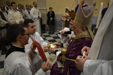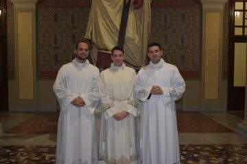 Durante l’omelia il Vescovo ha raccomandato ai nuovi accolti di innamorarsi sempre più dell’Eucarestia, forza, rifugio e consolazione di ogni uomo e, in particolare, di ogni presbitero. Li ha poi invitati ad avere uno sguardo amorevole e di predilezione verso i poveri. Infine, riprendendo le parole del rito, li ha esortati a vivere sempre più intensamente il sacrificio del Signore e a conformarvi sempre più la loro vita e il loro ministero.