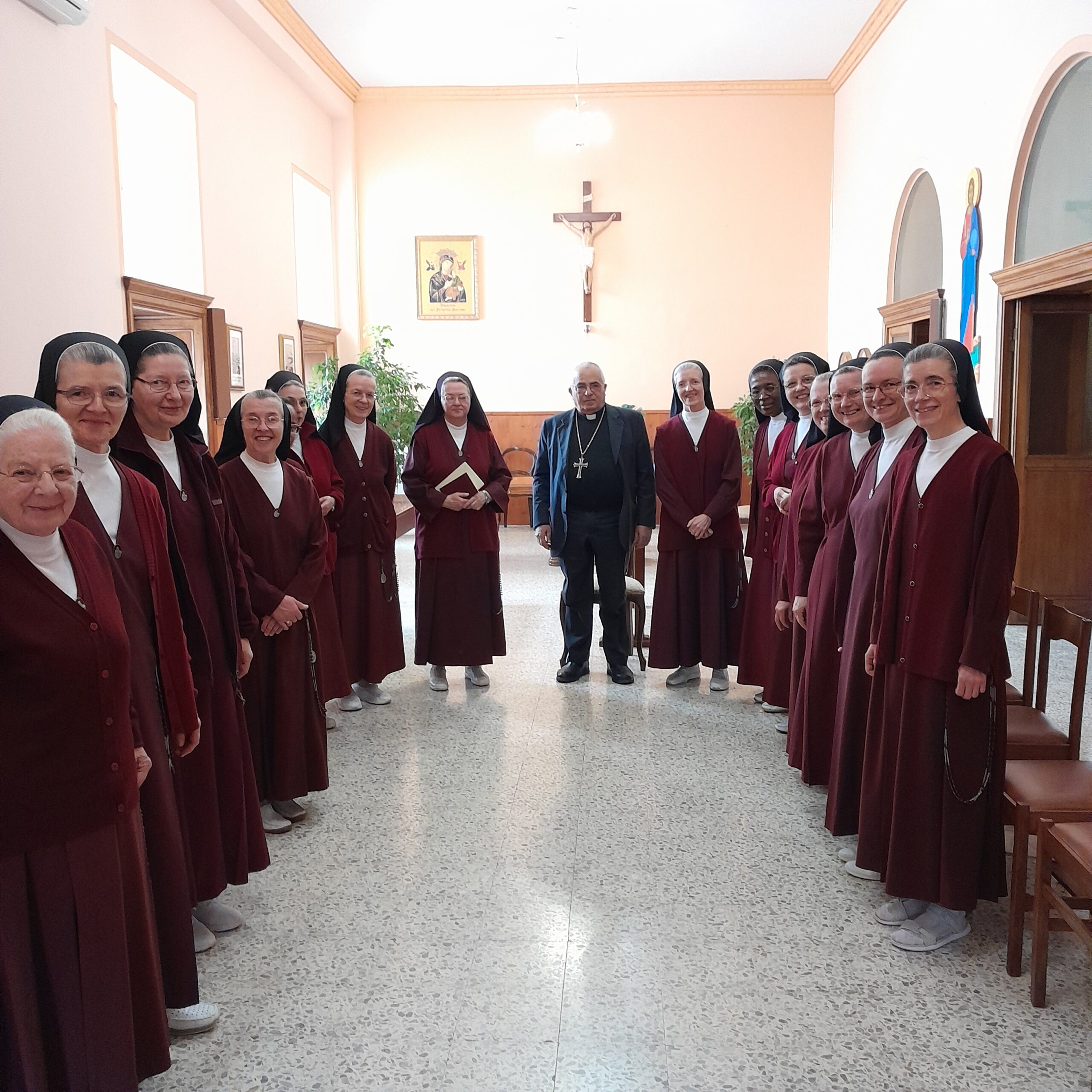 Siamo molto grate al nostro Vescovo per la stima e l’affetto che ci dimostra sempre e siamo felici di essere parte viva della nostra Diocesi; siamo anche consapevoli della nostra responsabilità di fronte a queste attese pastorali, spirituali, di essere non solo un punto di riferimento nella Diocesi, ma anche maestre dello spirito per chi cerca Dio. Noi siamo figlie della nostra Madre Fondatrice Beata M. Celeste Crostarosa e portiamo nel cuore tutto il mondo, secondo le parole di Gesù: “ti voglio con modo speciale nel Mio Cuore, acciò tu in questo ti sposi tutte le anime mie che io tengo nella mia Chiesa ed anche quelle che non sono ancora nel grembo di essa. Voglio che tu abbia per esse quel medesimo amore col quale io le amo svisceratamente”. Possa ardere in tutti noi lo stesso amore di Gesù e la presenza della nostra comunità orante possa accendere nei cuori la nostalgia di Dio, di relazione vera, profonda con Lui, con se stessi e con gli altri.