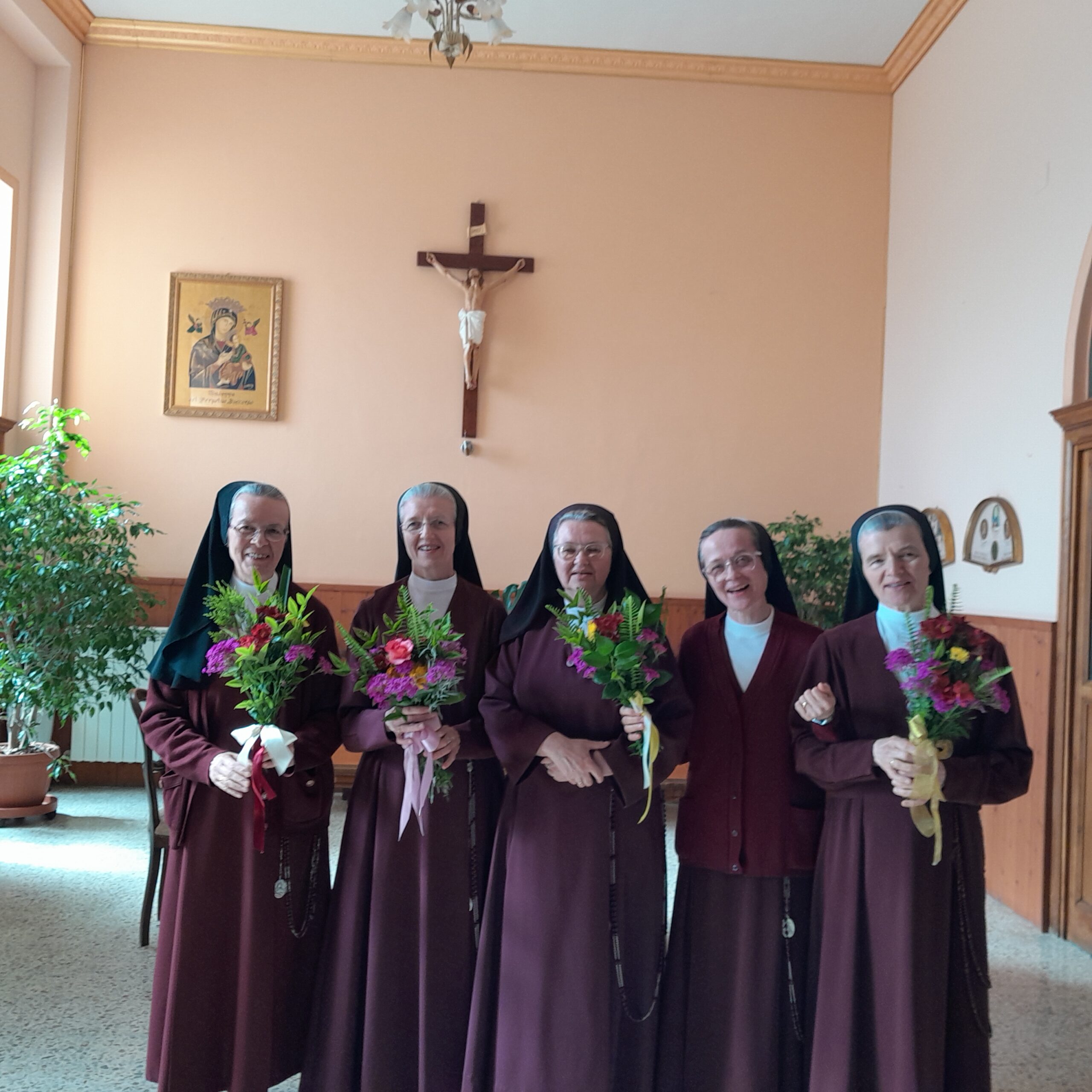 La Comunità delle Monache Redentoriste di Magliano Sabina, il 20 maggio c.a., ha vissuto la giornata delle elezioni. Il nostro salone, trasformato in Sala Capitolare, è divenuto Cenacolo in attesa della Pentecoste. Il nostro vescovo Ernesto Mandara ha presieduto le elezioni (can. 625,2), durante le quali tutte le monache capitolari hanno dato il loro voto segreto per scegliere colei che ci guiderà nei prossimi tre anni. Lo Spirito Santo ha indicato suor Edvige Kawik, e la sua elezione è stata accolta con grande gioia da parte di tutta la Comunità.