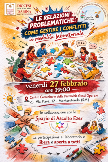 L’iniziativa nasce dalla collaborazione tra l’Ufficio di Pastorale Sociale e del Lavoro della Diocesi Suburbicaria Sabina-Poggio Mirteto e lo Spazio di Ascolto Ezer, il centro di ascolto diocesano rivolto a coppie, famiglie e singoli.