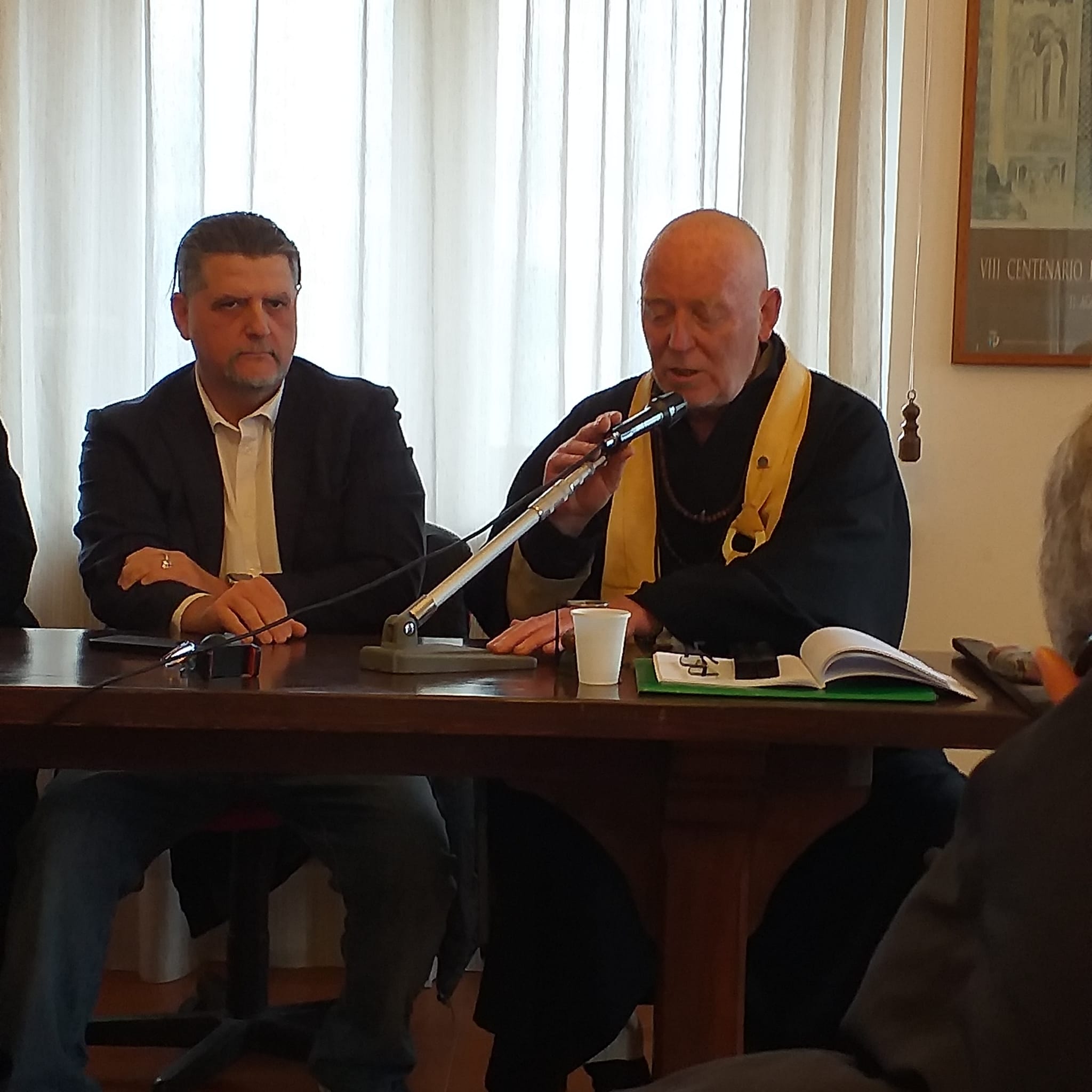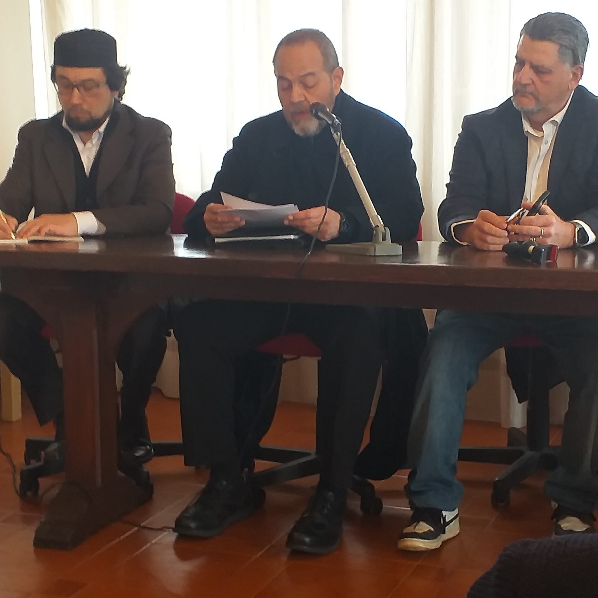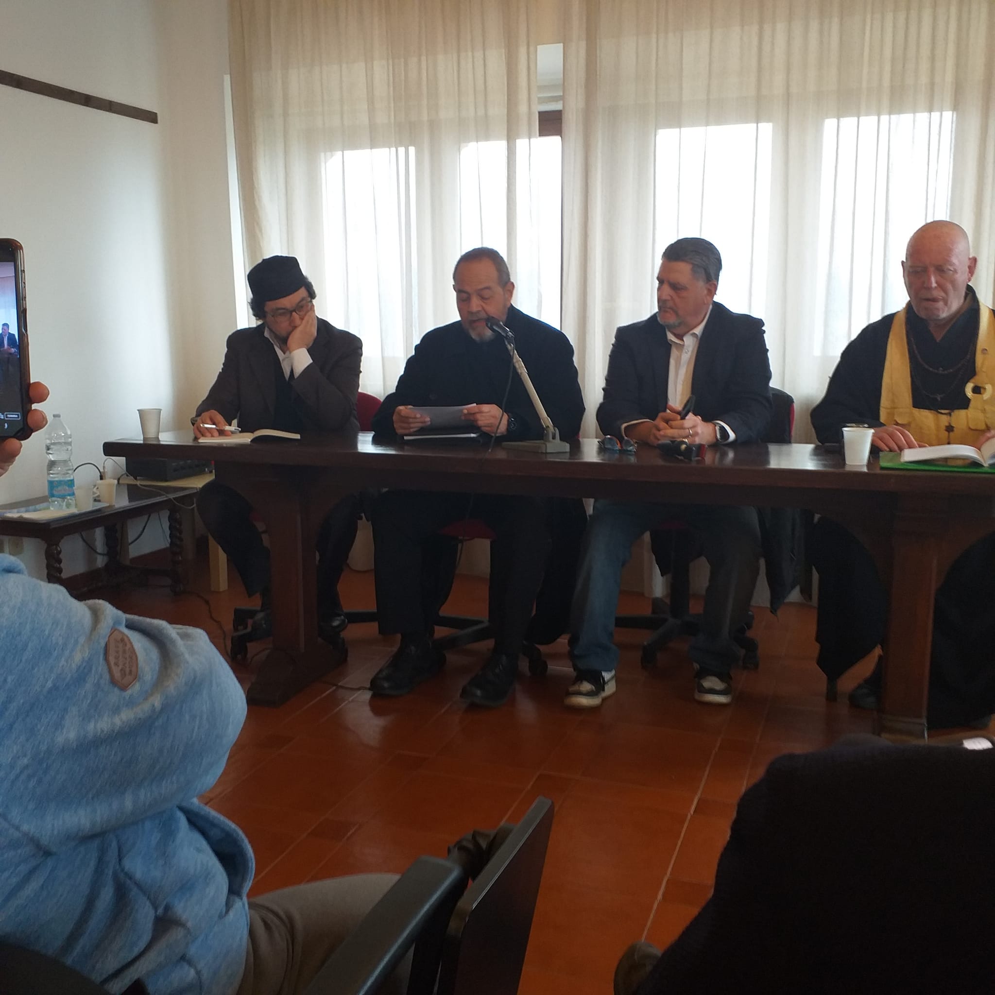 Mons. Gerald Cadieres dall’Abazia di Farfa, l’Imam Yahya Pallavicini dalla Moschea Al Wahid di Milano e il Maestro Zen Tiberti suddetto.