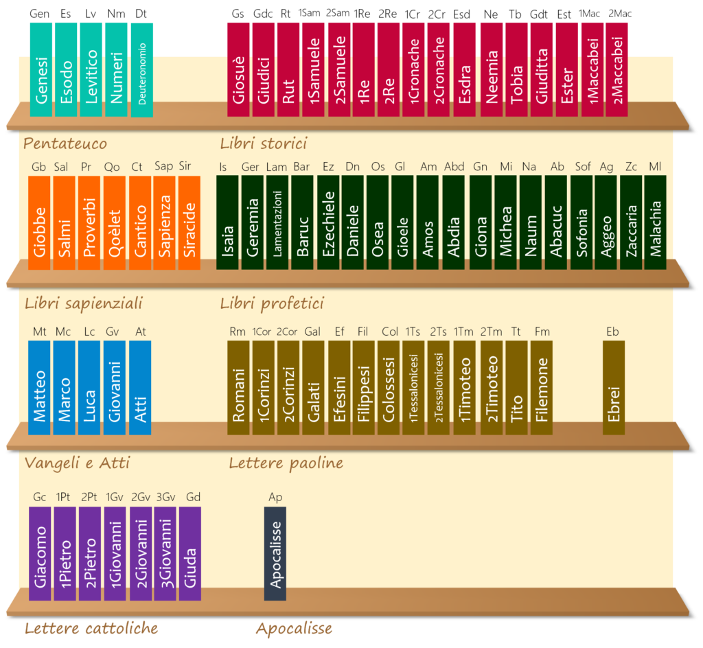 «È stata la Tradizione apostolica a far discernere alla Chiesa quali scritti dovessero essere compresi nell’elenco dei Libri Sacri. Questo elenco completo è chiamato canone delle Scritture. Comprende per l’Antico Testamento 46 libri (45 se si considerano Geremia e le Lamentazioni come un unico testo) e 27 per il Nuovo Testamento» (CCC 120).