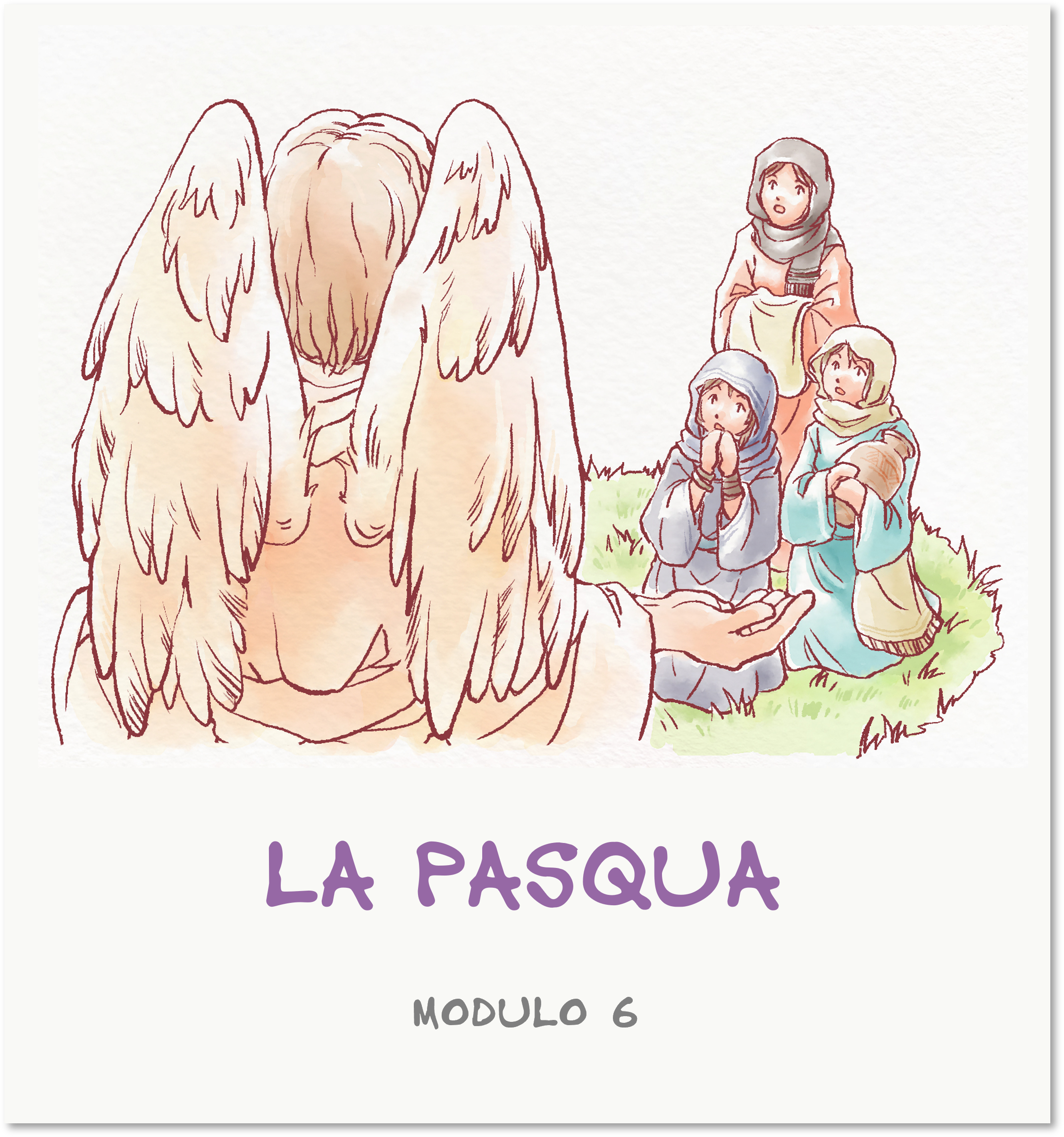 È Pasqua! Gesù ha vissuto una buona vita e ha predicato tanto che suo Papà ci vuole bene e ci vuole rendere suoi figli. Alcuni però non erano d’accordo con il suo messaggio e pensavano che fosse una bugia che Lui è il Figlio di Dio. Per questo strinsero un patto con Giuda, uno dei dodici più stretti amici (“Apostoli”) di Gesù, che lo ha tradito indicando a quelli che non gli volevano bene dove stava. Loro lo presero e lo fecero condannare a morte sulla Croce. Gesù morì. I suoi amici scapparono spaventati. Dopo tre giorni però Gesù è risorto dalla morte. È ora vivo per sempre, in una vita che non è semplicemente quella di prima, ma una vita gloriosa e luminosa, che mostra a tutti che Lui è Dio. Ma non solo! Gesù ha sconfitto la morte, e dopo che Lui è risorto le persone che muoiono in amicizia con Lui vengono accolte in Cielo e alla fine dei tempi riceveranno anche loro la risurrezione del corpo. Il Risorto ci ha anche lasciato un dono grandissimo: lo Spirito Santo. È Dio presente nel nostro cuore, che ci conferisce come una forza invisibile, ma vera, che ci aiuta a vivere come Gesù! Lo Spirito è presente nella Chiesa e soprattutto opera nei sacramenti, in cui il mistero pasquale viene reso attuale per noi oggi: questo lo vediamo in maniera speciale durante la celebrazione dell'Eucaristia.