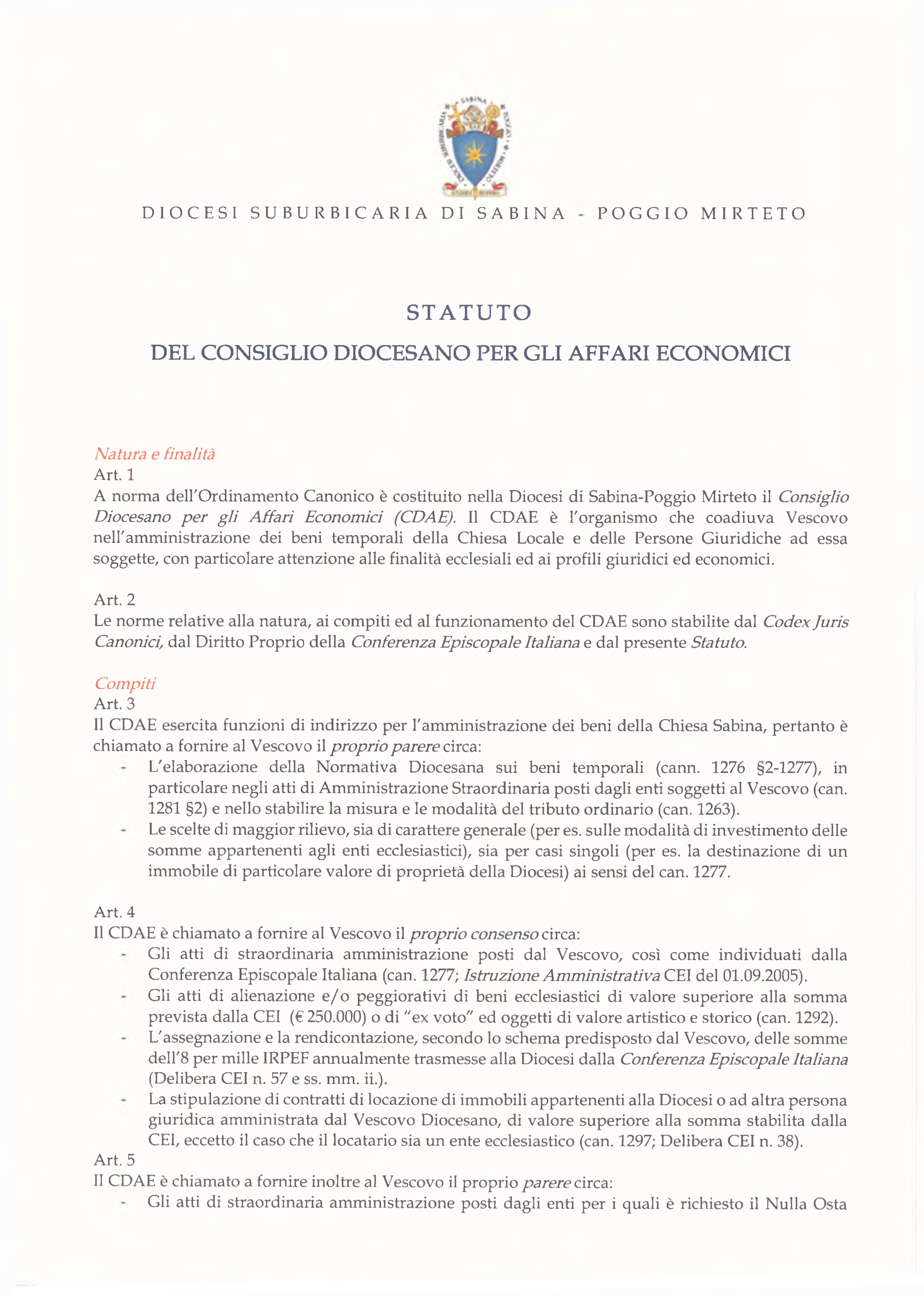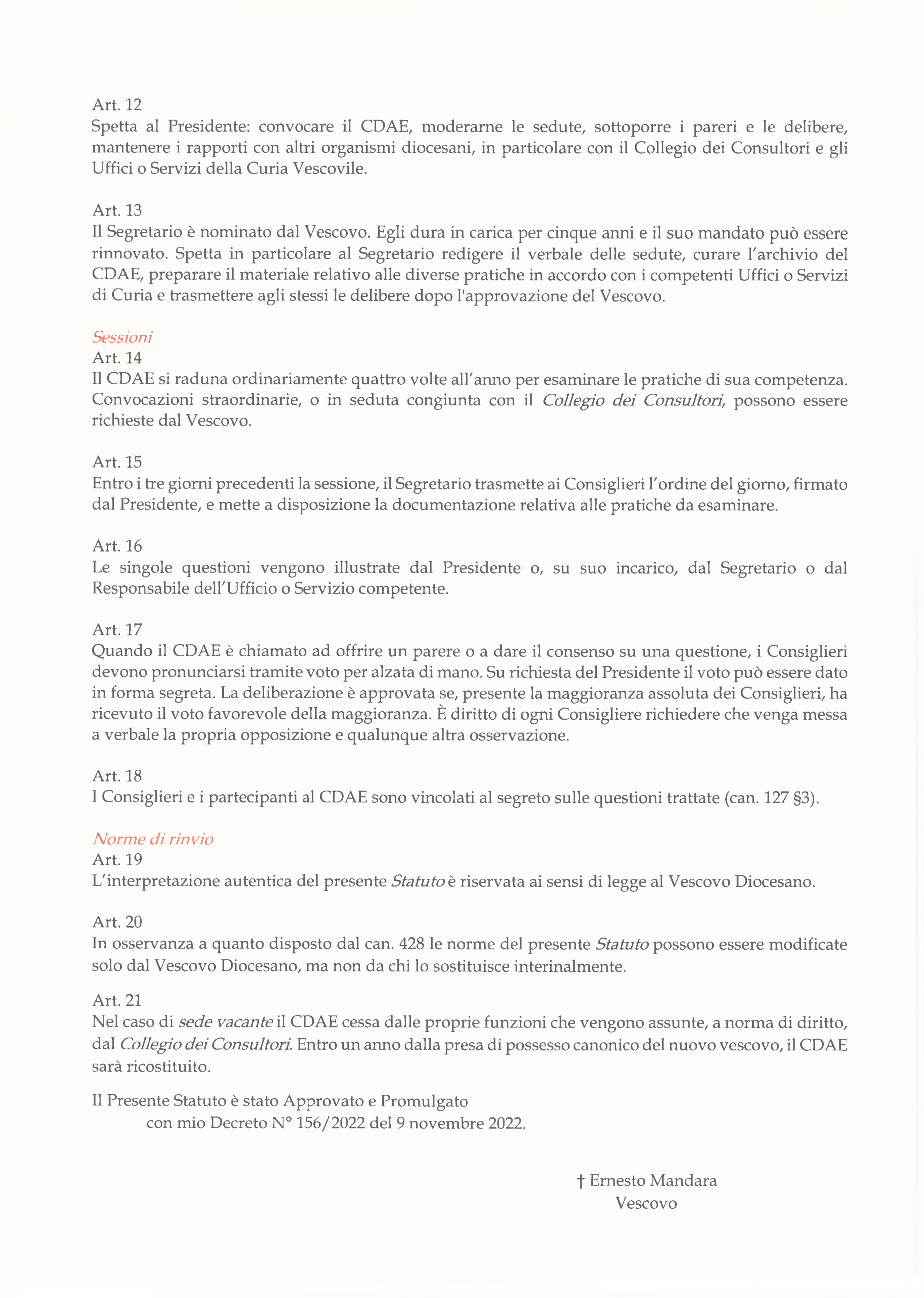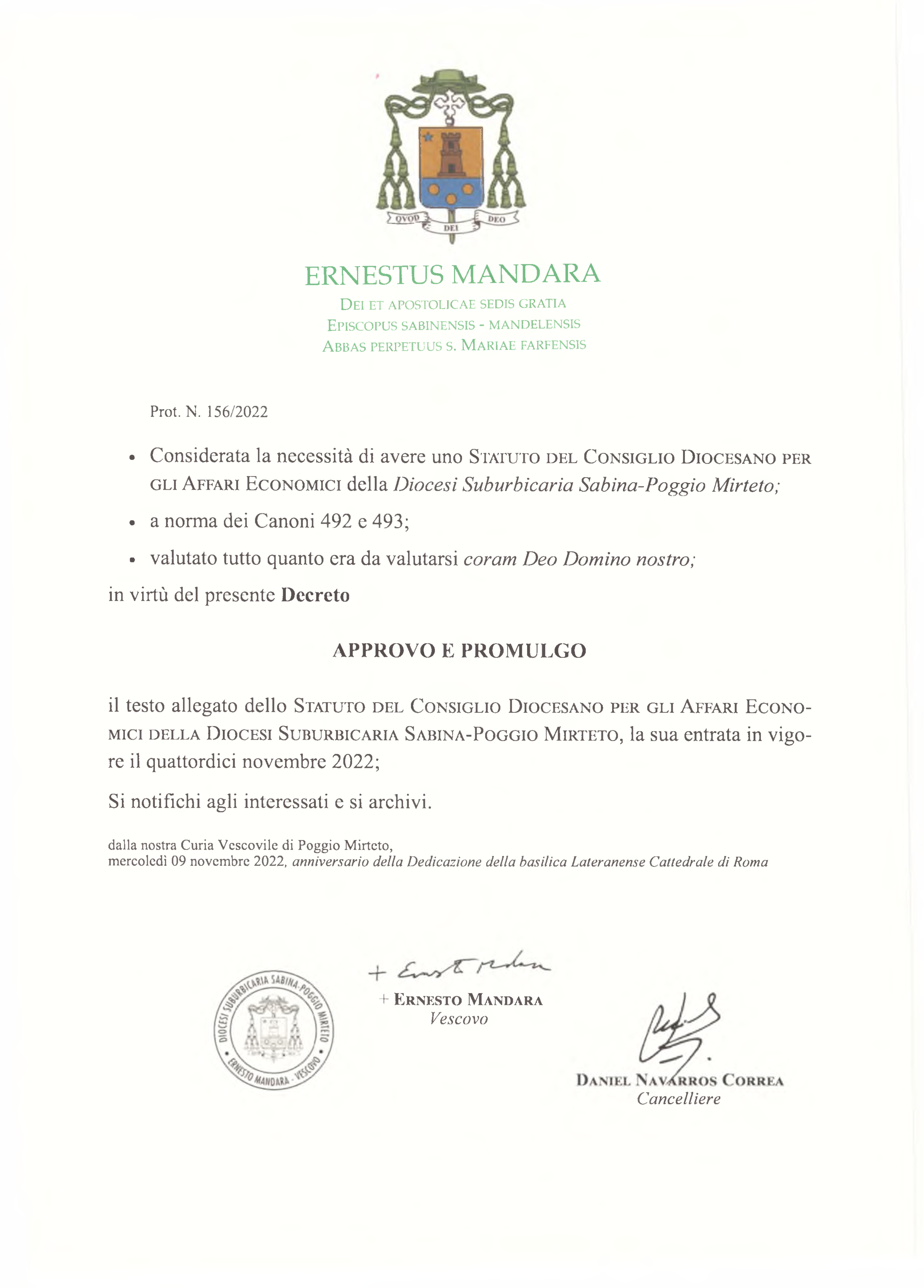 • 2022-156 - Decreto e Statuto Consiglio Affari Economici Diocesano